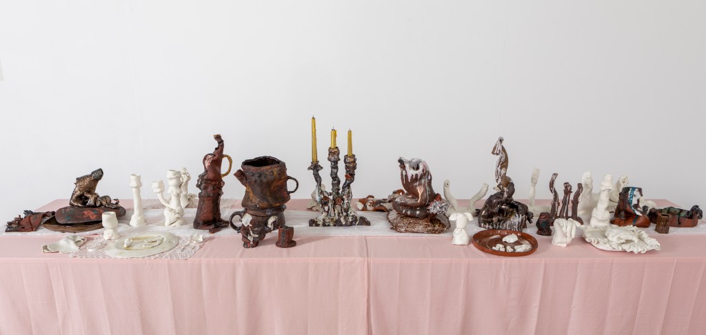 The installation containing porcelain and terracotta sculptures