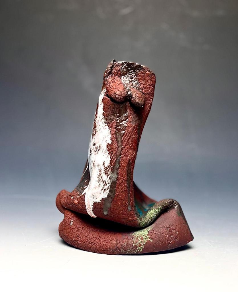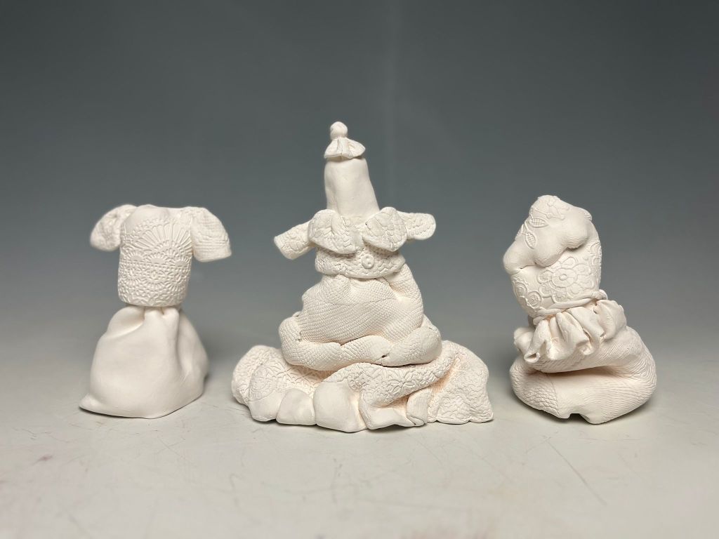 I work with terracotta clay and porcelain to make sculptures using hand building techniques involving slab work, pinching and press moulding. I use various pigments like stains and glazes to further finish these high fired artworks in a kiln. Further I touch upon themes like universal human values and gender equality with culture and heritage in the background. I personally feel that aesthetics in the art intertwined with important themes can bring about change in the society and can be really empowering for anyone engaging with it. Through the incorporation of body imagery and textiles, particularly lace, societal expectations regarding women’s roles are challenged, highlighting the weariness and reluctance to conform to traditional gender norms. The artworks act as mediators, fostering a dialogue between intention and manifestation, with the hope of initiating healing and resolution amidst societal inequalities.