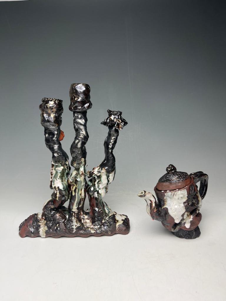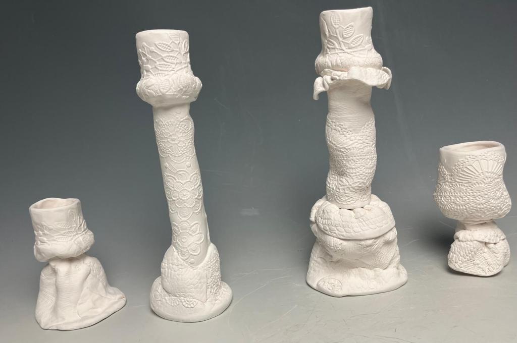 Terracotta sculpture : Stand Tall Terracotta sculpture : Person with Folds (view-1)Terracotta sculpture: Person with Folds (view-2)Terracotta sculpture: Person with Folds ( view-3)Terracotta sculpture: Jug me not Terracotta sculpture : Person with CorsetTerracotta sculptures (can be used as a Candelabra ) “The Holy Trinity -Candelabra and “The Resilient Teapot”Terracotta: Candelabra (view 2): “The Holy Trinity”Terracotta sculpture: “The Resilient Teapot”Porcelain sculpture : “The Glove of Promise”, (view-1)Porcelain sculpture: “The Glove of Promise” (view-2)Porcelain sculpture: “The Glove of Promise” (view-3)Porcelain sculptures: “The Porcelain Dolls”Porcelain sculpturesPorcelain Candle sticksCandelabra : “The Holy Trinity”, Material: Terracotta, Stains and Glazes, Wires